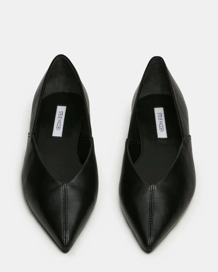Løft din hverdagselegance med Tovi sort læder ballerinasko med spids tå. Den aflange silhuet skaber en flatterende linje, mens det klassiske ballerina-design tilbyder tidløs alsidighed. Perfekt til en problemfri overgang fra kontoret til aftenen, leverer denne flade sko diskret raffinement uden kompromis. En ægte investering i et poleret, holdbart design.