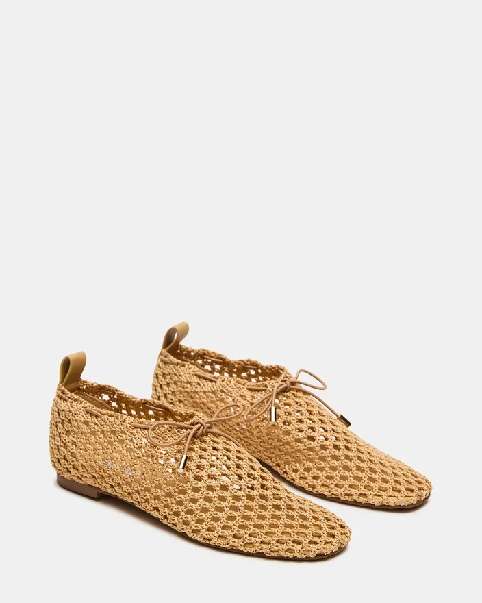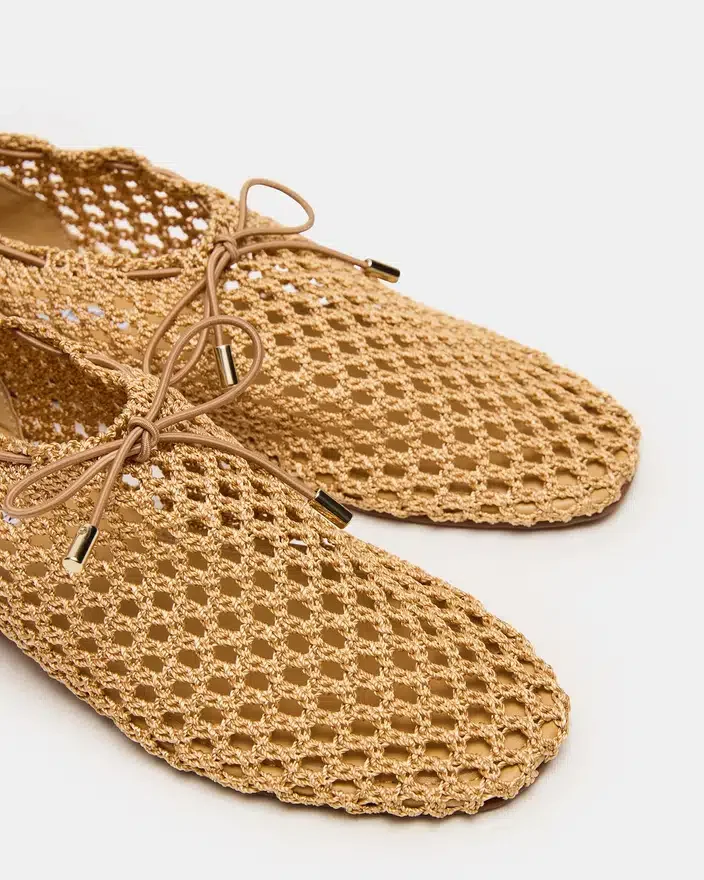 Den yndefulde og alsidige Vespa Natural balletflade har en vævet overdel med justerbar snørelukning for en tilpasset pasform. Det minimalistiske design går problemfrit fra studiet til gaden og tilbyder komfort og elegance i hvert skridt. Fremstillet til personer, der værdsætter tidløst design og raffinement.