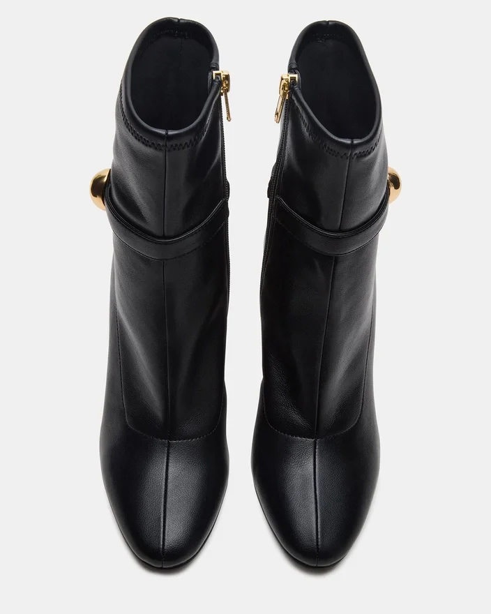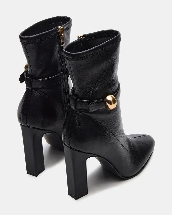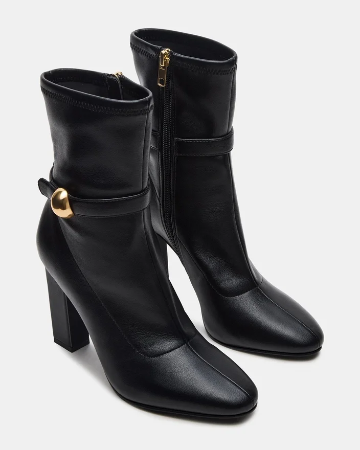 Løft din stil med Aroma Belt Black-højhælede ankelstøvler med blokhæl, der har en robust blokhæl for komfort og stabilitet hele dagen. Det slanke sorte design fremhæves af diskrete gulddetaljer, der tilføjer et raffineret strejf af luksus. Denne ankelstøvl er perfekt til både professionelle og Casual omgivelser og kombinerer moderne elegance med praktisk anvendelighed.