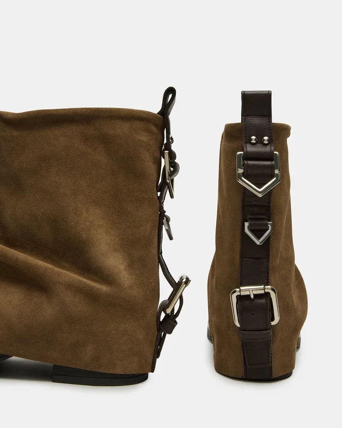 Benji-ankelstøvlen har et sofistikeret design med ombukket kant kombineret med en slank, motorcykelinspireret silhuet. Den unikke spænde på bagsiden tilføjer et karakteristisk touch, der blander stil med diskret funktionalitet. Denne ankelstøvle er skabt med både komfort og udtryk i tankerne og løfter ethvert outfit med ekspert håndværk og moderne flair.