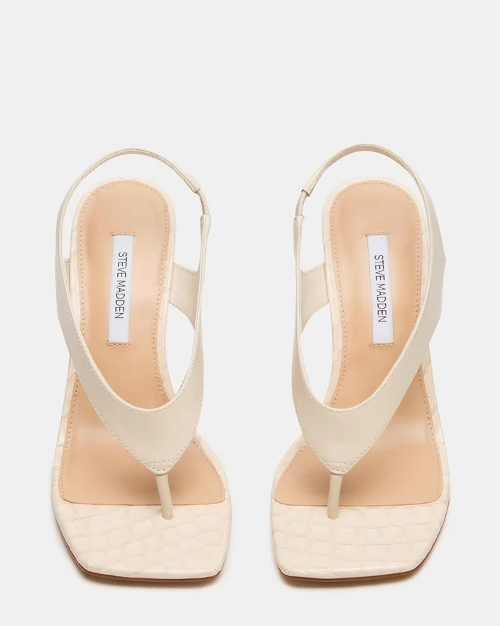 Improv Bone Leather kombinerer en sofistikeret silhuet med firkantet tå med et sikkert Slingback-design, der giver både stil og stabilitet. Denne tåremsandal har en raffineret hæl, der løfter dit hverdagslook, samtidig med at den er behagelig at have på hele dagen.