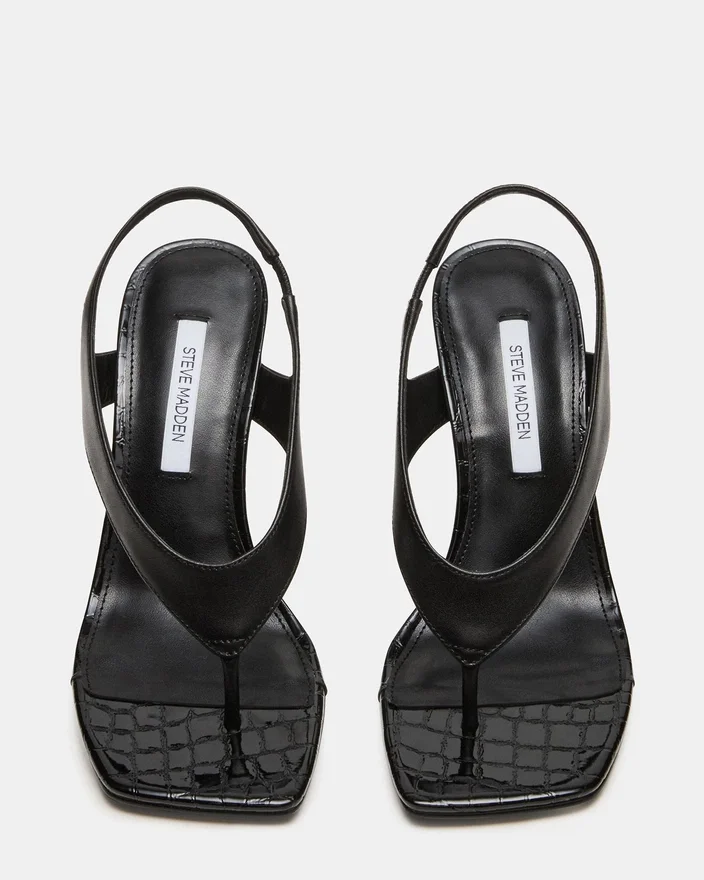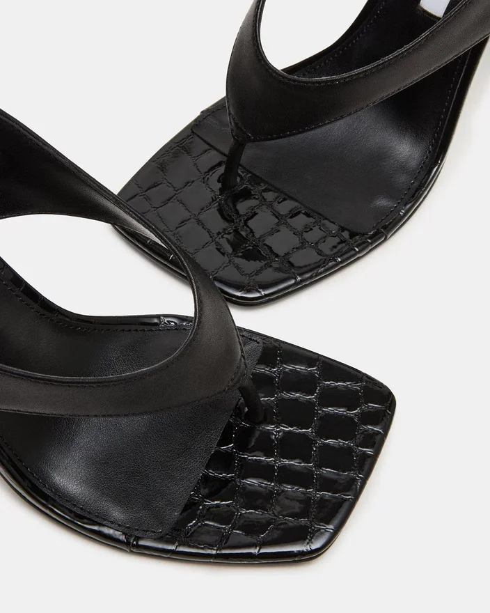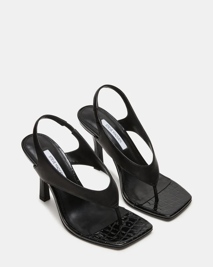 Improv Black Leather kombinerer en sofistikeret silhuet med firkantet tå med et sikkert Slingback-design, der giver både stil og stabilitet. Denne tåremssandal har en raffineret hæl, der løfter dit hverdagslook, samtidig med at den er behagelig at have på hele dagen.