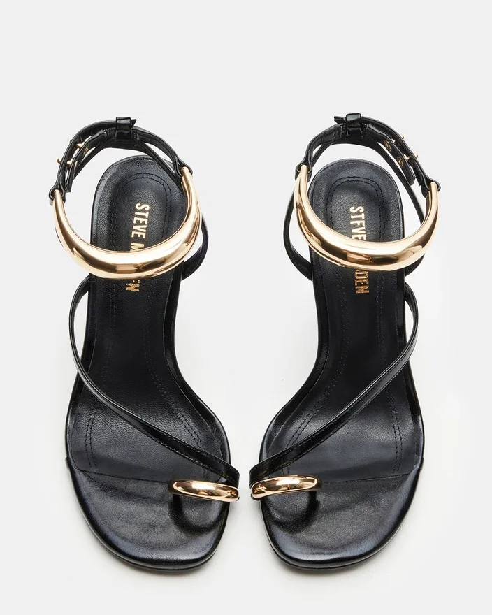 Træd ind i stil med Tia Stiletto-højhælen. Med dristige gulddetaljer og et remdesign vil denne sko løfte ethvert outfit. Slip din dristighed løs og erob dagen i disse statement-højhælede sko!