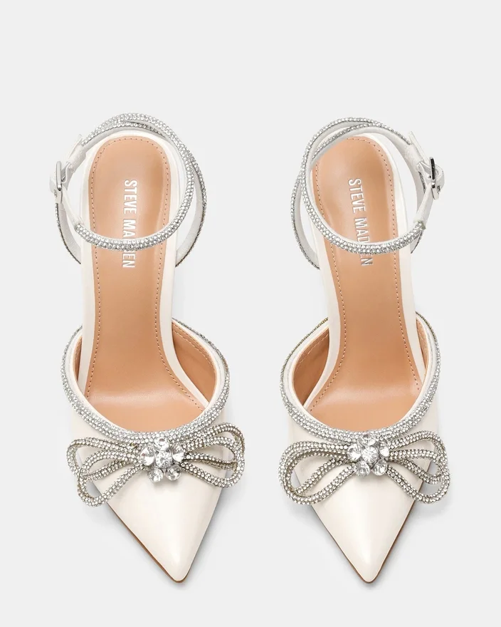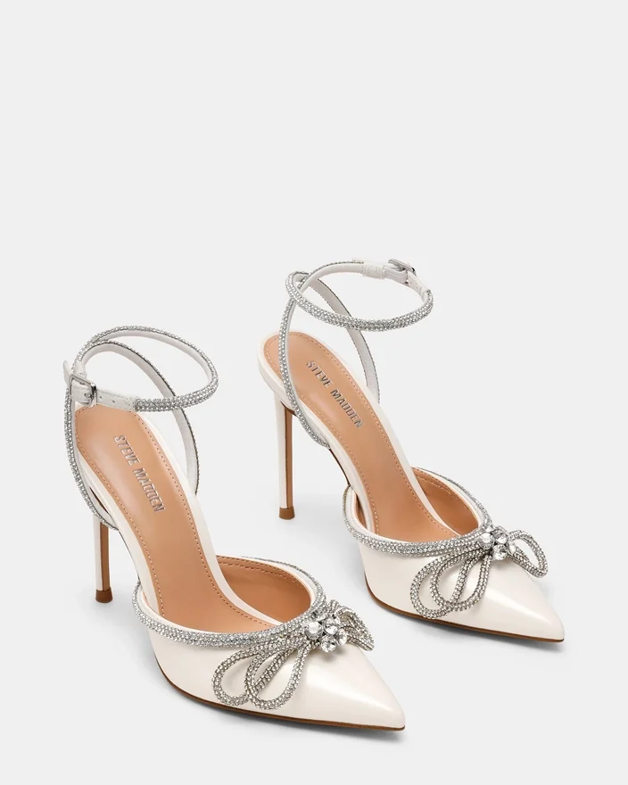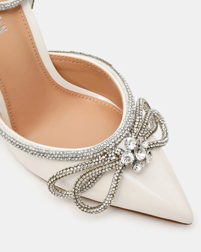 Du bliver festens midtpunkt i Viable, den festlige højhælede sko, du vil gå med i mange år fremover. Dette par med spids tå har en slank stilethæl og er udstyret med en smal ankelrem med rhinsten og et sløjfedesign.