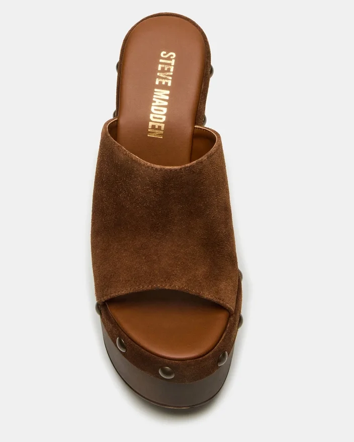 Løft din stil med Jovie platform-kilehæl-sandalen. Disse trendy mule-sandaler har stilfulde nitter, der tilføjer et strejf af kant til ethvert outfit. Det komfortable kilehæl-design giver både højde og stabilitet, hvilket gør dem perfekte til at have på hele dagen. Træd ind i moden med disse must-have sandaler.
