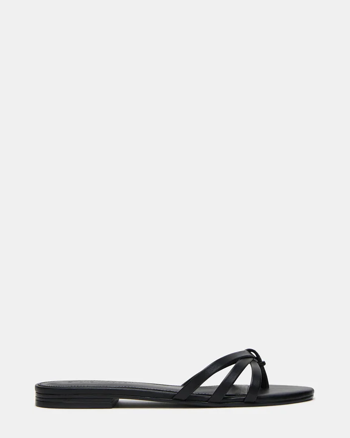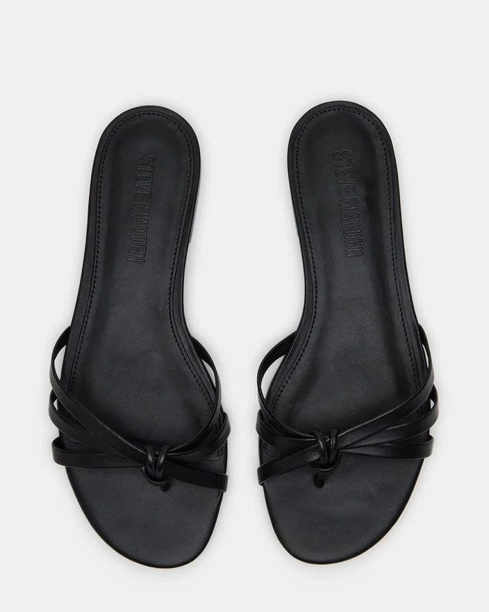 Calissi-sandaler i sort læder er fremstillet af luksuriøse materialer og har et elegant design med remme og en behagelig flad sål. Disse sandaler er perfekte til enhver lejlighed og løfter nemt dit outfit, samtidig med at de giver komfort hele dagen.