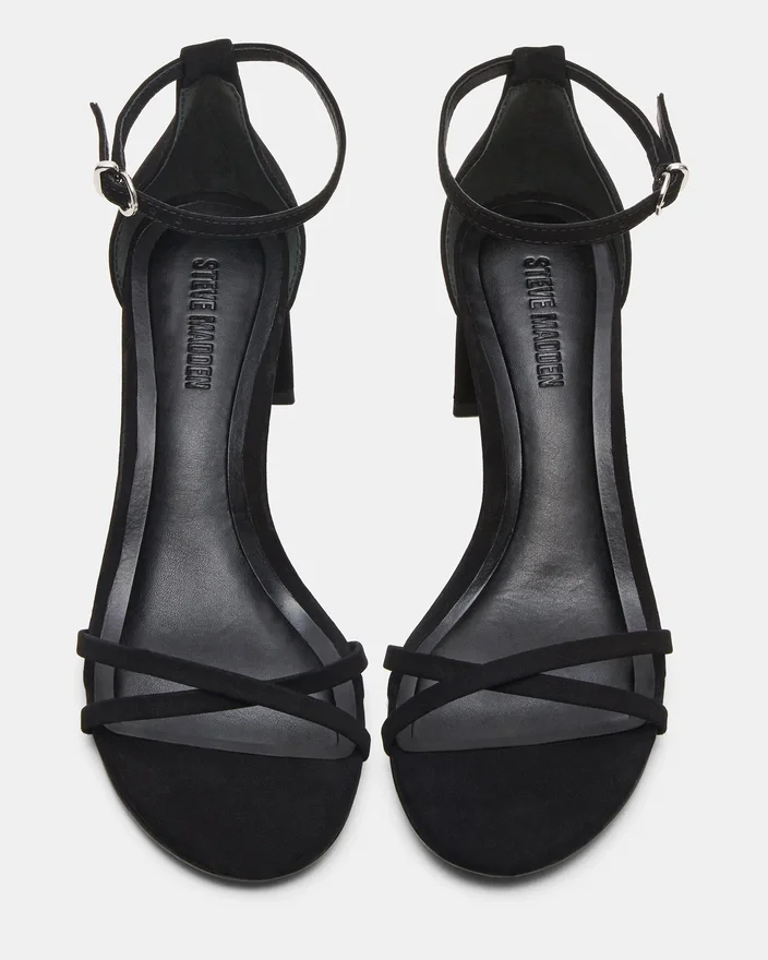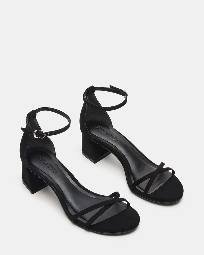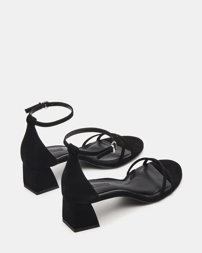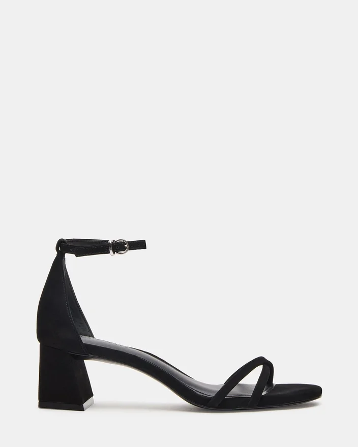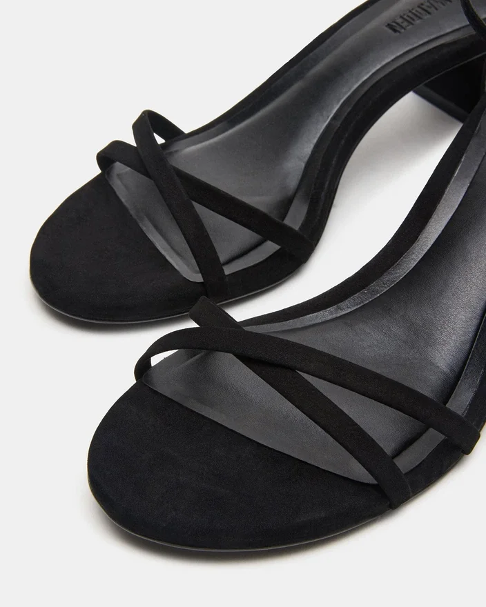 Rae Black Nubuck-sandaler med remme og blokhøjhæl kombinerer moderne stil med pålidelig komfort. Den er fremstillet af kvalitetsmaterialer og har smalle remme, der giver sikker støtte og fremhæver fodens naturlige form. Den robuste blokhøjhæl sikrer stabilitet og komfort, hvilket gør den ideel til både dag- og aftenbegivenheder, hvor du ønsker at se elegant ud uden at gå på kompromis med komforten. Denne sandal er en perfekt balance mellem sofistikering og praktisk anvendelighed og er et ekspertvalg til at forbedre din skosamling.