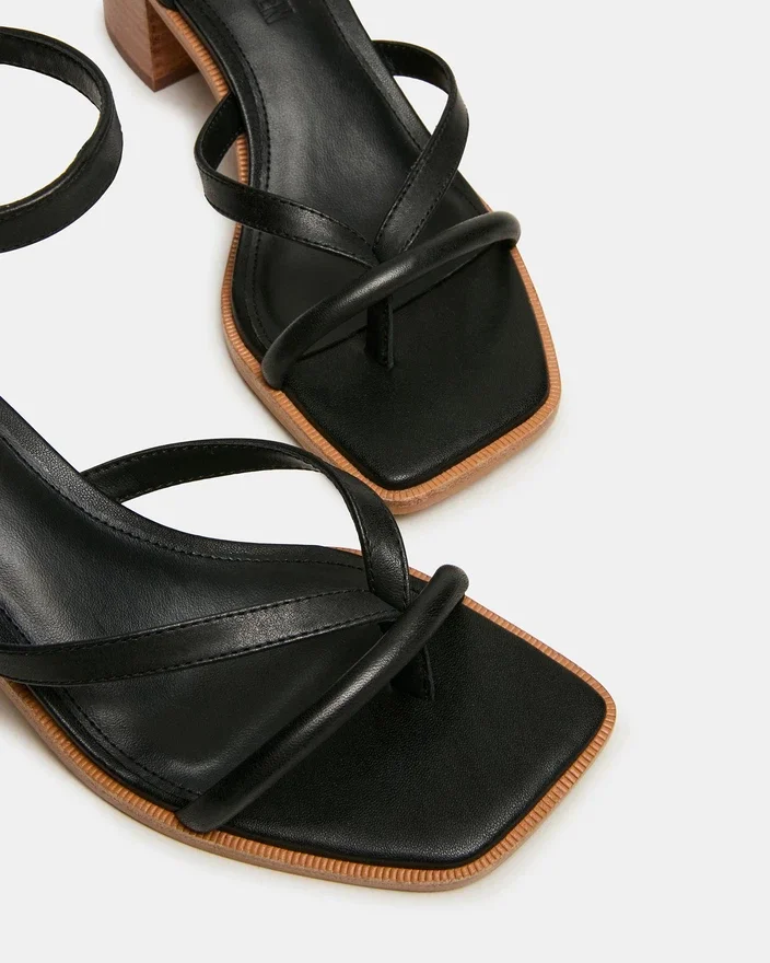 Giv din skosamling et løft med Tilly sort læder, en sandal med firkantet tå, remme og blokhæl, der er designet med både stil og stabilitet for øje. Med en sikker ankelrem sikrer denne sandal en sikker pasform, mens den robuste blokhæl giver behagelig støtte ved langvarig brug. Fremstillet af kvalitetsmaterialer passer den nemt til både dag- og aftenoutfits og kombinerer raffineret æstetik med praktisk komfort.