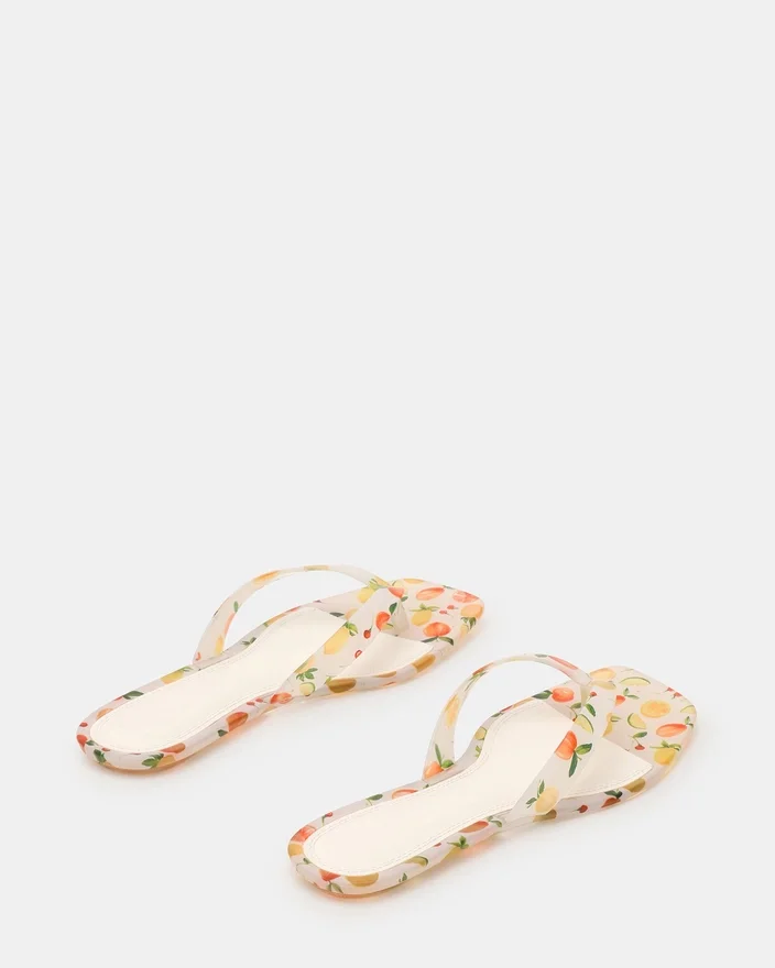Trella Jelly Citrus-sandaler har et moderne design med firkantet tå kombineret med en minimalistisk tårem, der tilbyder både stil og komfort. Den er fremstillet af kvalitetsmaterialer og giver et raffineret look, der passer til forskellige lejligheder. Den slanke silhuet fremhæver fodens form og sikrer samtidig en sikker pasform, hvilket gør den til et oplagt valg for dem, der søger diskret elegance i fodtøj til varmt vejr.