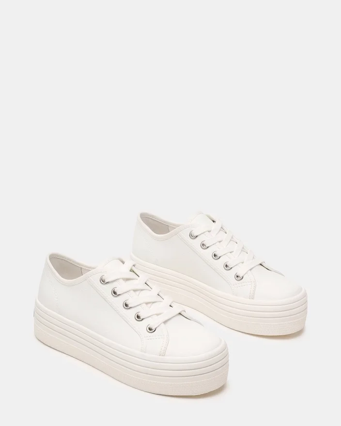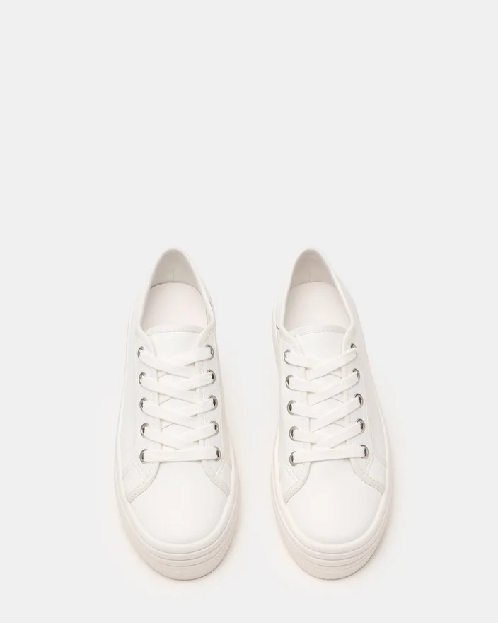 Bobbi White platform-sneakers udstråler diskret sofistikering med sin snørelukning og lave silhuet. Dette design er skabt til alsidighed og passer perfekt til både afslappede weekender og elegant hverdagsbrug. Den forhøjede plateausko giver diskret højde, samtidig med at den sikrer et solidt og stabilt fodfæste. Førsteklasses håndværk sikrer holdbarhed ved gentagen brug, hvilket gør den til et pålideligt must-have i enhver garderobe. Perfekt til dem, der sætter pris på rene linjer og funktionelt design.