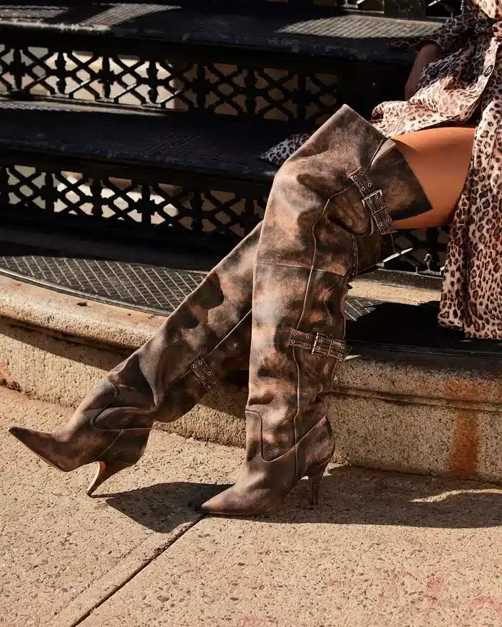 Baddie-støvlen er fremstillet af eksperter og er både kantet og praktisk. Disse over-the-knee-støvler med højhælede hælers er lavet med spids tå og spænde-detaljer og giver et unikt touch til ethvert outfit. Løft din stil med disse iøjnefaldende støvler.