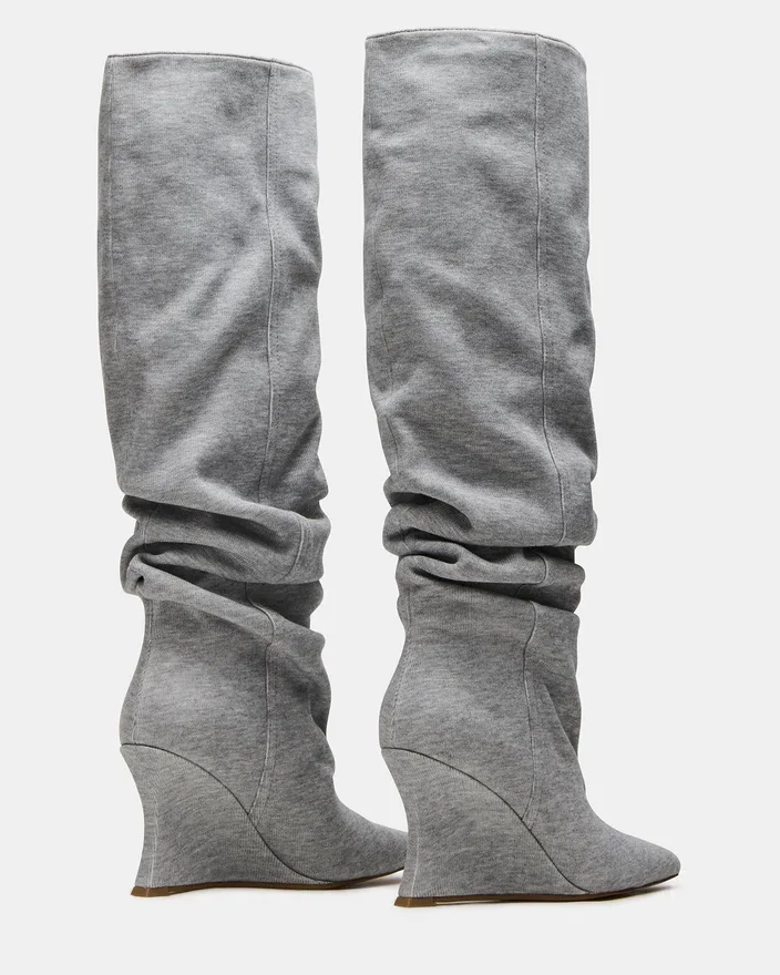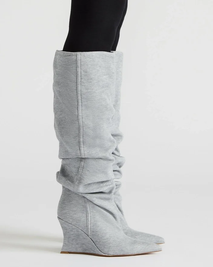 Distortion-støvlen har et krøllet design, kilehæl og spids tå, der går op til knæhøjde for en dristig, modebevidst silhuet. Denne støvle er skabt til at kombinere kantet stil med komfortabel pasform og løfter ethvert outfit med sit slanke design og karakteristiske kilehæl. Ideel til dem, der søger et statement-stykke, der balancerer trend og praktisk anvendelighed.
