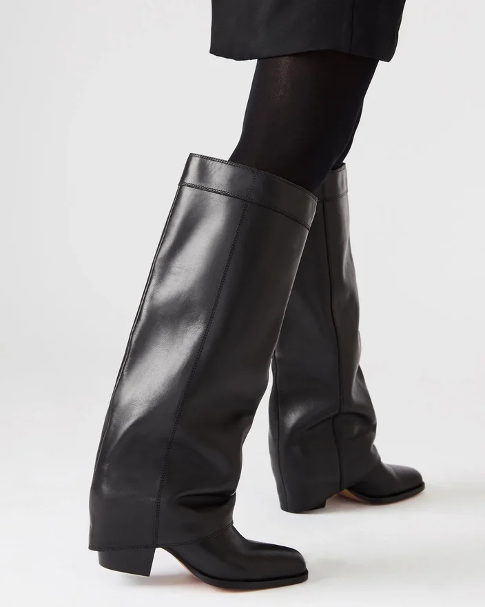 Løft din skosamling med Winnick Olive Leather-støvlen, der har et sofistikeret design med opsmøg, der går op til knæet for et markant look. Denne støvle er fremstillet med en moderne firkantet tå og understøttet af en robust blokhæl, hvilket kombinerer stil med stabilitet og gør den ideel til brug hele dagen.