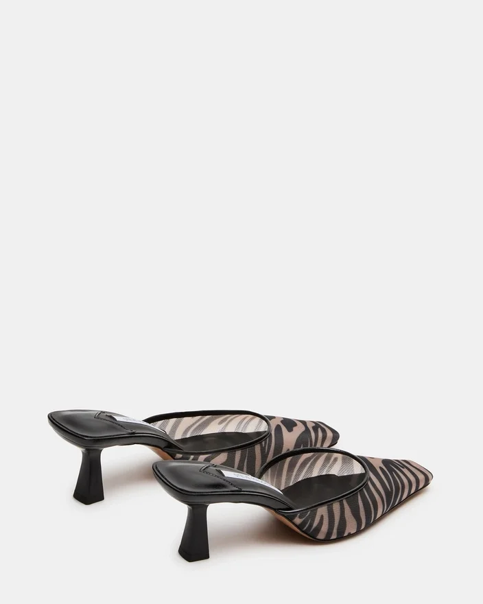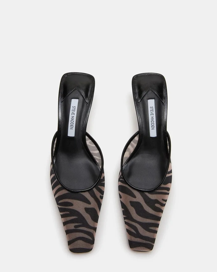 Alyse Zebra Mesh-muleskoen med firkantet tå udstråler diskret elegance med sin raffinerede silhuet og lave hæl. Denne alsidige model passer perfekt både på kontoret og til aftenbrug og tilbyder komforten ved et slip-on-design uden at gå på kompromis med det elegante look. Den strukturerede firkantede tå giver et moderne touch, mens den lave hæl sikrer, at skoen kan bæres hele dagen. Et uundværligt supplement til enhver skosamling.