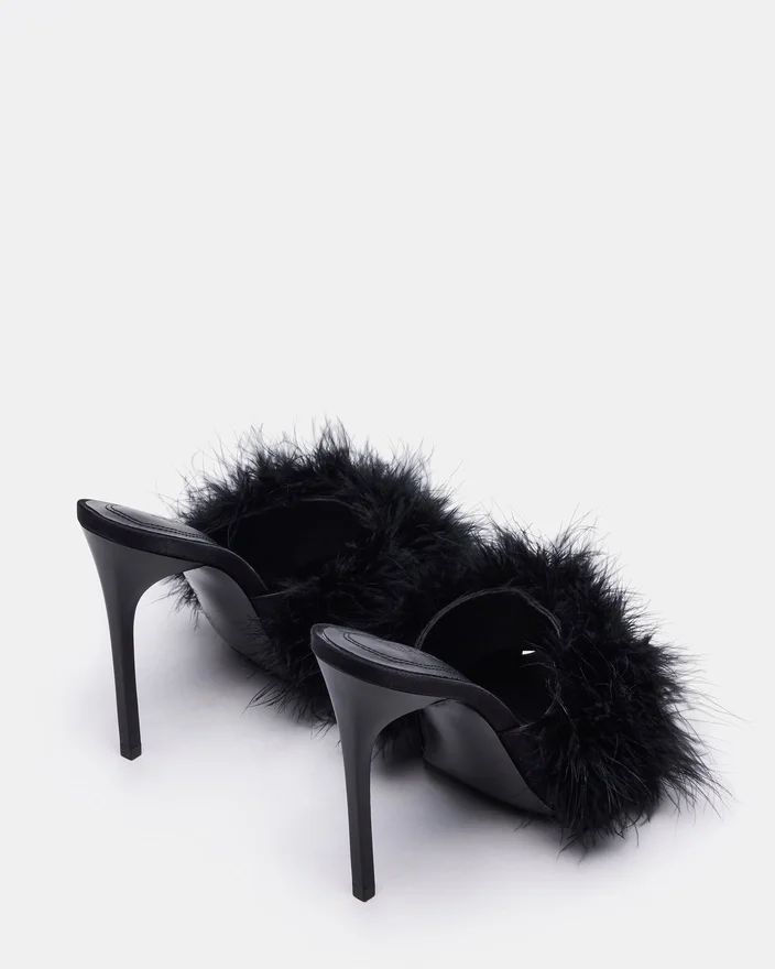 Løft din stil med Ashbey-muleskoen, der har en slank silhuet med spids tå og en slank stilethæl, der giver et raffineret look. Dette design er pyntet med delikate fjer og tilføjer et strejf af sofistikeret flair, der er perfekt til at gøre indtryk ved enhver begivenhed. Slip-on-konstruktionen sikrer nem påtagning, samtidig med at det elegante, modebevidste look bevares.