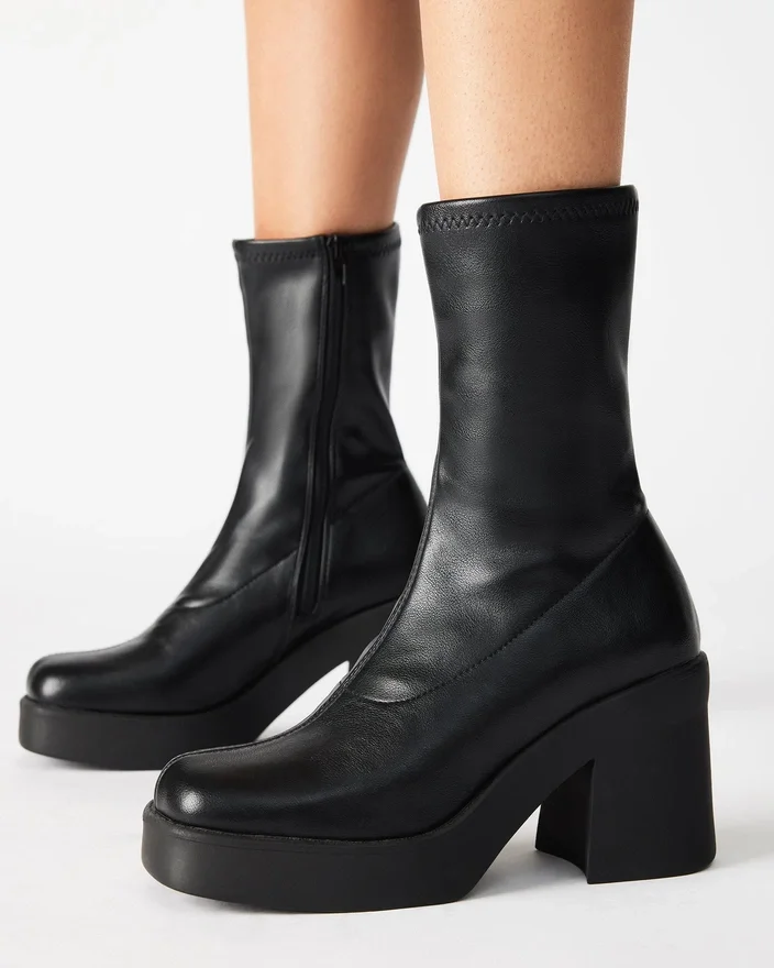 Giv alle dine looks et retro-twist med Klayton. Disse 70’er-inspirerede støvler har en tyk platformssål, en tæt, soklignende pasform og passer til alt fra midi-nederdele til blomsterkjoler.