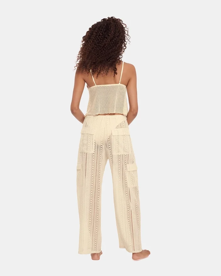 Denne hæklede bikini-cover-up i perlemor er fremstillet af intrikat hækling og forener strandelegance med praktisk design. Det gennemsigtige, strukturerede stof falder smukt over badetøjet og sikrer samtidig god åndbarhed, så det er perfekt til varmt vejr. De funktionelle lommer tilføjer uventet praktisk funktionalitet uden at gå på kompromis med tøjets raffinerede æstetik.