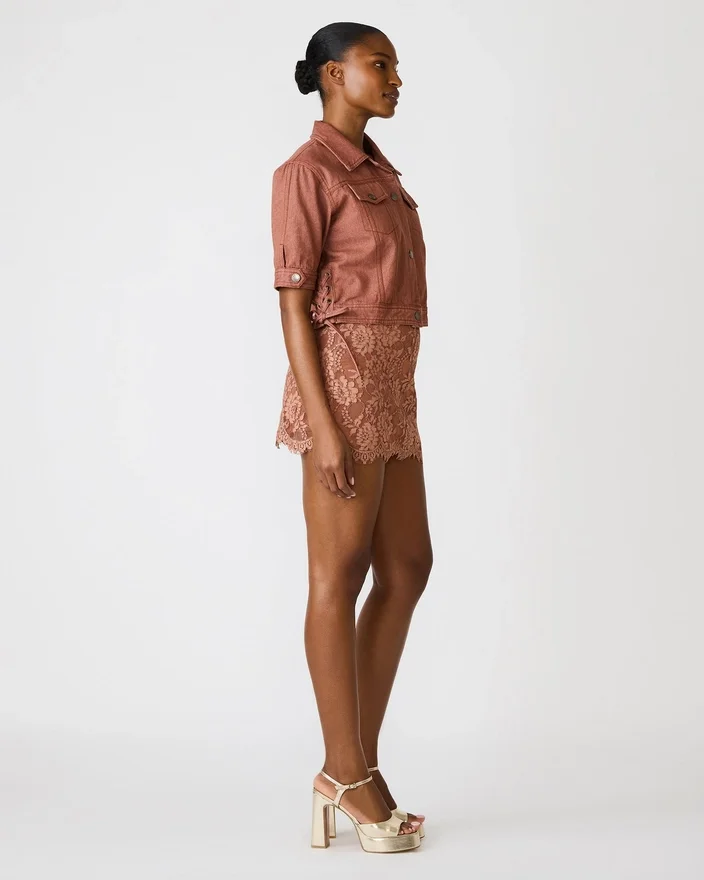 Blu Jacket Rust er en denimjakke med knapper, der er designet med en klassisk krave og korte ærmer til lag-på-lag-looket i varmt vejr. Den strukturerede silhuet og den tidløse denimkonstruktion gør den til et uundværligt stykke tøj til at skabe afslappede, polerede outfits. Perfekt til overgangssæsoner eller som et let lag over dine yndlings-T-shirts og -tanktoppe.