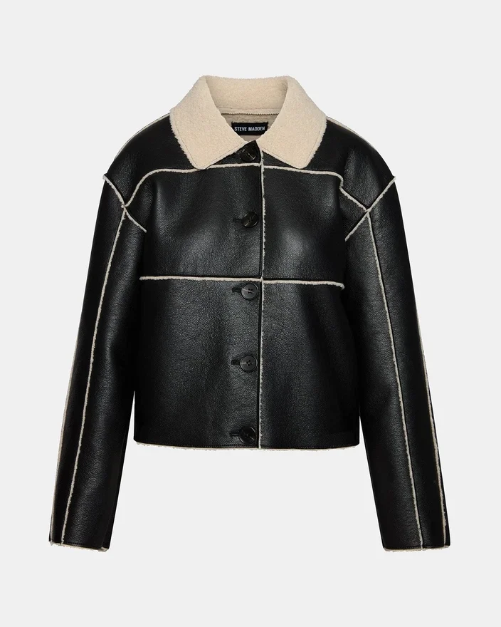 Tilia-frakken kombinerer sofistikeret design med praktisk varme. Med en langærmet silhuet og en luksuriøs krave i imiteret pels tilbyder denne jakke i imiteret læder både stil og komfort.