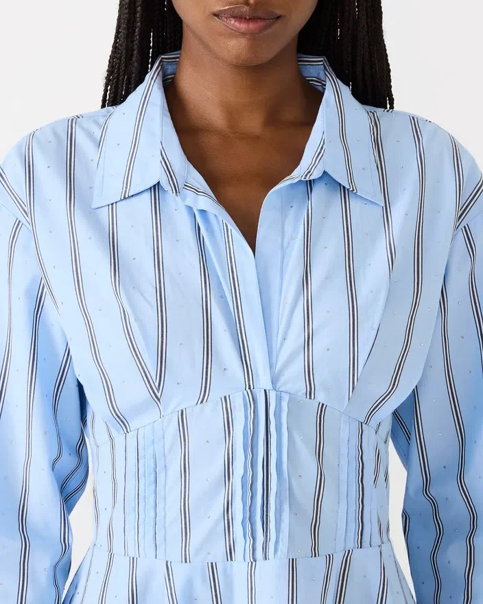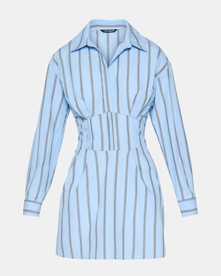 Ariany-kjolen i Estate Blue kombinerer tidløs elegance med praktisk hverdagsbrug. Dette langærmede design har en skarp krave, der løfter enhver lejlighed, mens den indsnævrede talje skaber en flatterende silhuet, der fremhæver din figur. Funktionelle lommer foran tilføjer praktisk funktionalitet uden at gå på kompromis med stilen, hvilket gør dette stykke lige så velegnet til kontoret som til weekendudflugter. Kjolen er alsidig og kan nemt kombineres med din eksisterende garderobe, hvilket giver et poleret look, der går på tværs af sæsonerne.