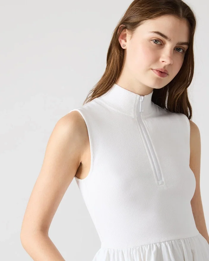 Ribstrikket overdel med lynlåsdetalje og høj hals