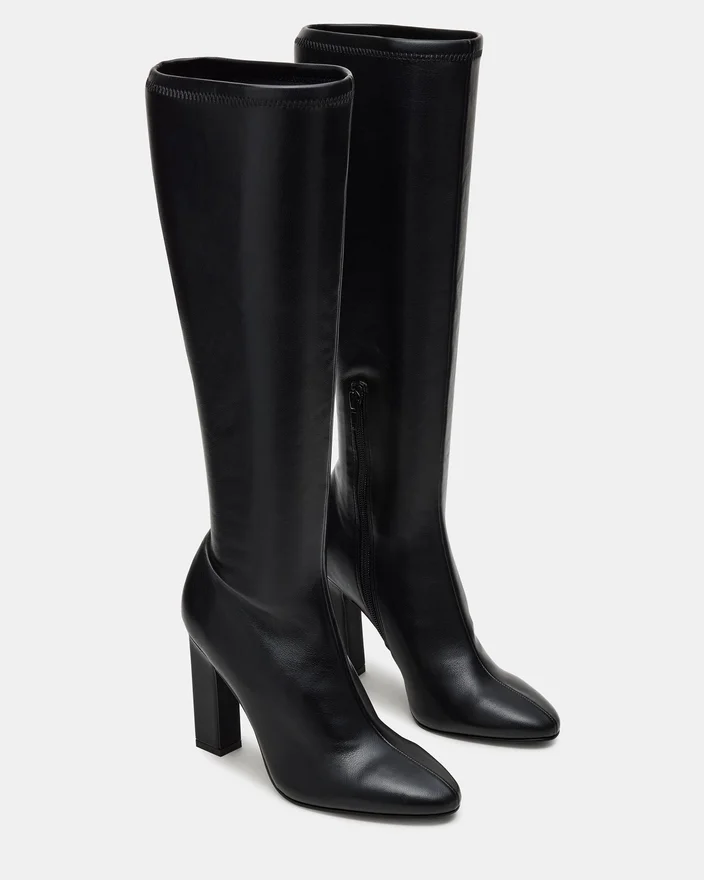 Løft din stil med vores Aria Black støvler med bredt skaft og hæl. Disse støvler er fremstillet med et elegant design og vil tilføre et strejf af sofistikering til ethvert outfit. Du kan trygt træde ud i stil med en behagelig hælhøjde og sikker pasform. Perfekt til enhver modebevidst person.