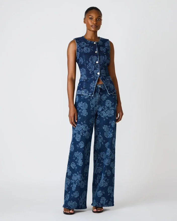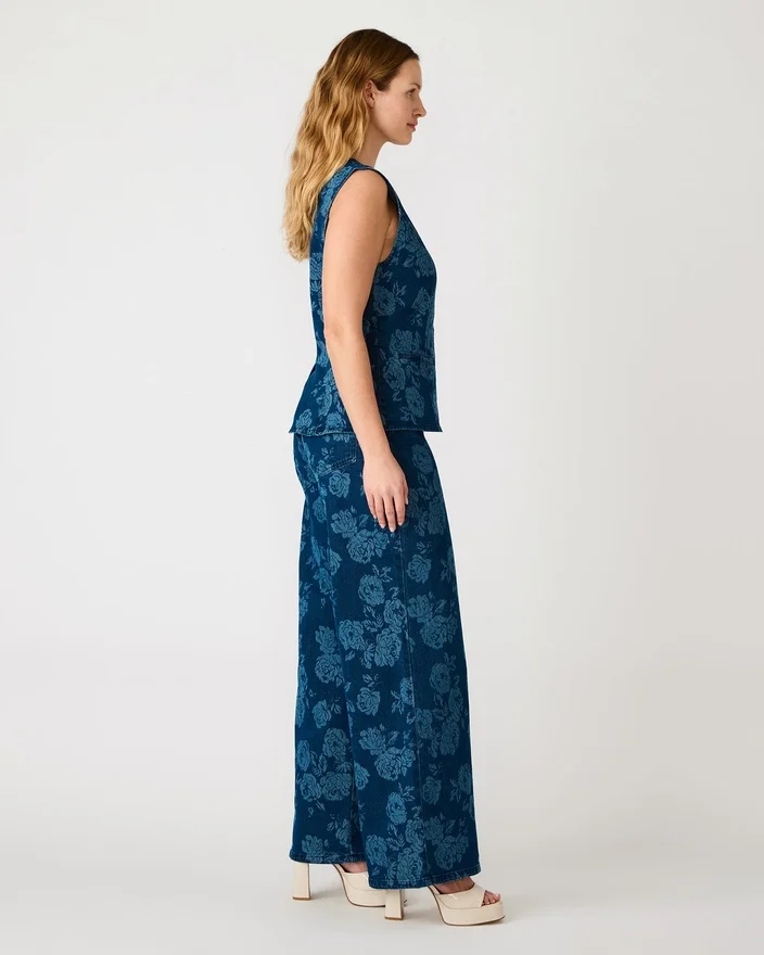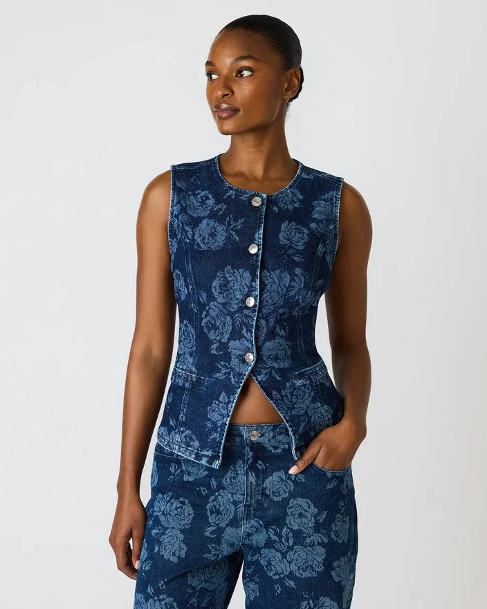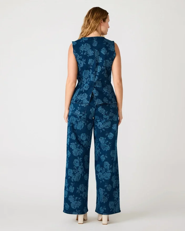 Wesley Top Rose Frost kombinerer tidløs denim med et uventet blomsterprint, hvilket skaber et alsidigt stykke tøj, der nemt kan bruges til både Casual og mere formelle lejligheder. Denne ærmeløse top med knapper har en struktureret silhuet, der klæder mange forskellige kropstyper, mens det delikate rosenmønster tilføjer visuelt interesse uden at overdøve dit look. Perfekt som et enkeltstående statement-stykke eller under jakker og cardigans, og den passer perfekt sammen med det matchende sæt for et koordineret look. Det slidstærke denimstof sikrer lang levetid, hvilket gør dette til en pålidelig investering til din daglige garderobe.
