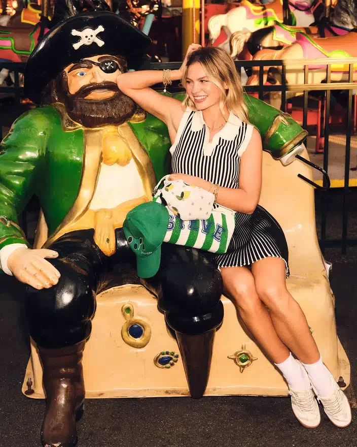 • Maia er 178 cm høj og bærer størrelse S
