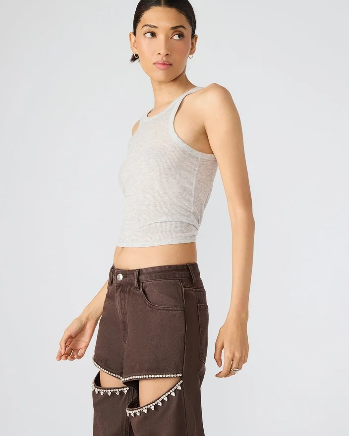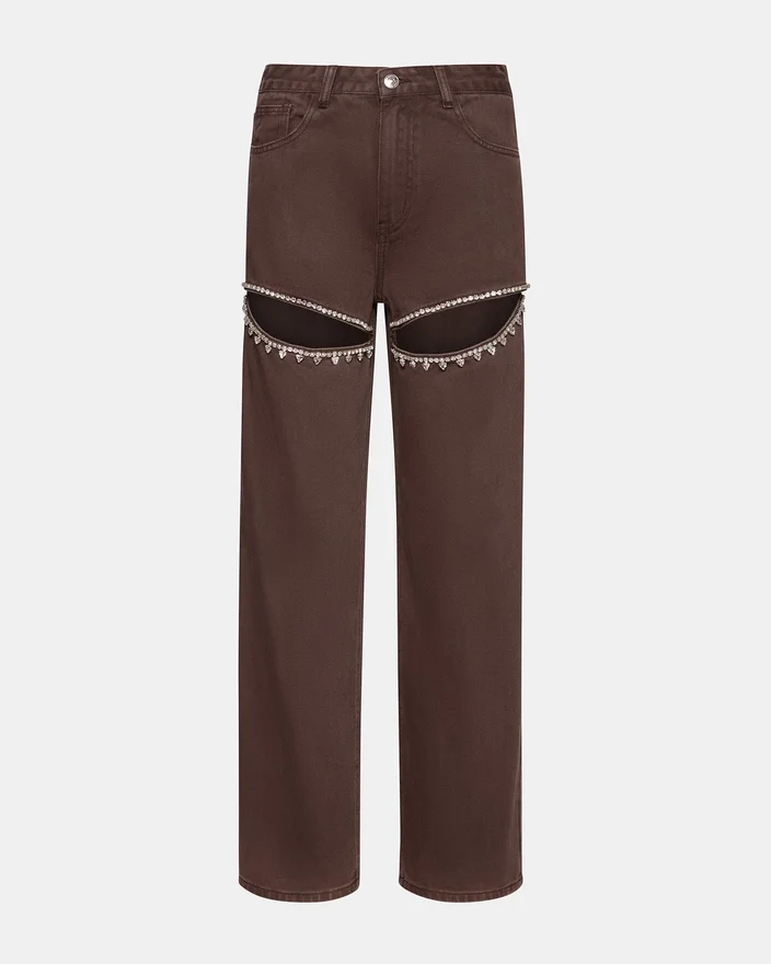 Taylor-jeansene giver et stilfuldt twist på et klassisk design. Med deres brede ben er disse jeans både komfortable og alsidige, mens de intrikate udskæringer med rhinestones på lårene tilføjer et strejf af glamour.