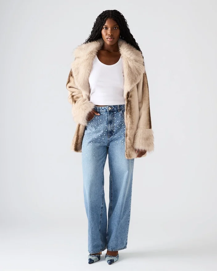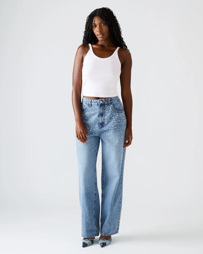Taylor Jean Forever Blue giver et stilfuldt twist på et klassisk design. Med en lige pasform tilbyder disse jeans komfort og alsidighed, mens de intrikate udskæringer med rhinestones på lårene tilføjer et strejf af glamour.
