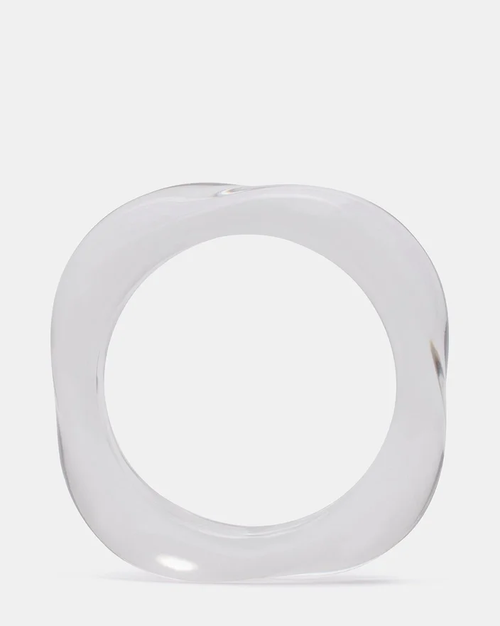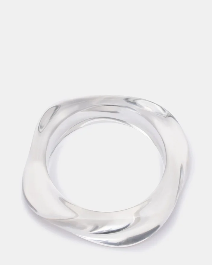 Dette buede retroarmbånd i klar udstråler vintage-æstetik med et gennemsigtigt design, der passer perfekt til enhver garderobe. Den let buede silhuet fremhæver håndleddet, samtidig med at den bevarer den nostalgiske charme. Fremstillet med gennemsigtighed for øje fanger det klare materiale lyset smukt, hvilket gør det til et diskret, men alligevel iøjnefaldende Accessory.