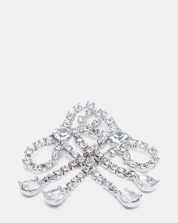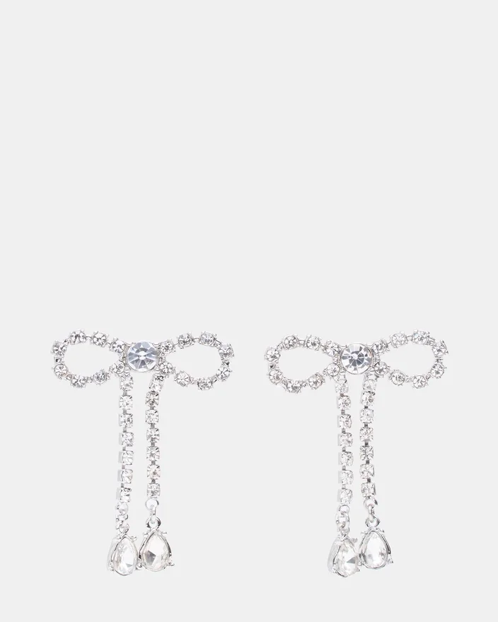 Løft din smykkekollektion med disse iøjnefaldende øreringe med sløjfe i sølv og rhinestones. Hvert par er udformet i skinnende rhinestones, der er omhyggeligt placeret, så de fanger lyset smukt og tilføjer sofistikeret glans til ethvert outfit. Den ikoniske sløjfesilhuet bringer tidløs elegance med et moderne touch, hvilket gør disse alsidige smykker perfekte til både hverdagsbrug og særlige lejligheder. Uanset om du pifter et Casual outfit op eller fuldender et formelt look, leverer disse øreringe raffineret elegance og iøjnefaldende glamour.