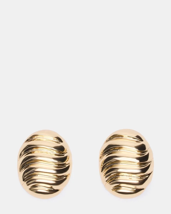 Giv din daglige smykkekollektion et løft med disse rillede, runde ørestikker i guld, udført i en skinnende metallisk finish. Det geometriske design har diskrete, lineære detaljer, der fanger lyset smukt og tilfører dybde til ethvert look. Disse alsidige ørestikker er perfekte til at kombinere med andre smykker eller bære alene og passer lige så godt på kontoret som til en aften ude. De er lette og behagelige at have på hele dagen og er et uundværligt must-have i den moderne garderobe for smykker.