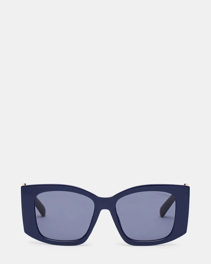 - Solbriller med navyblå stel og gulddetaljer