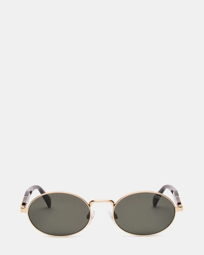 Løft din brillekollektion med Landy solbriller i guld, der har en sofistikeret oval ramme i skinnende guld. De antracitgrå linser giver beskyttelse og reducerer blænding, hvilket gør dem ideelle til både hverdagsbrug og udendørs eventyr. Denne tidløse silhuet kombinerer raffineret æstetik med funktionelt design og tilbyder et alsidigt Accessory, der passer til enhver garderobe.
