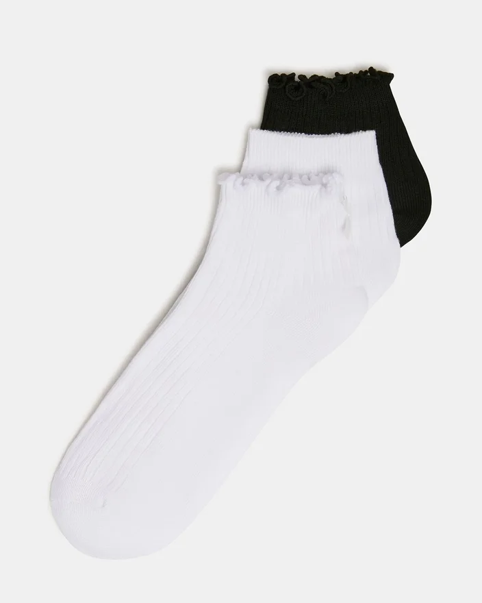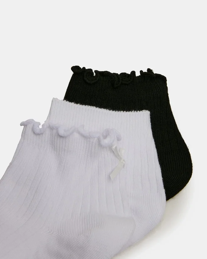3-pak Emma Lettuce Edge-strømper, hvid/sort