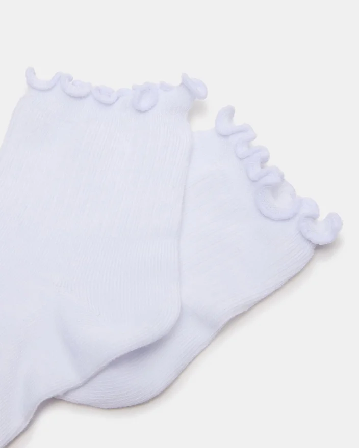 Giv din sokkeskuffe et legesygt twist med vores Lettuce Edge ankelstrømper i hvid! Disse søde ankelstrømper har en sjov kant i form af salatblade, der tilføjer et strejf af skæve detaljer til ethvert outfit.