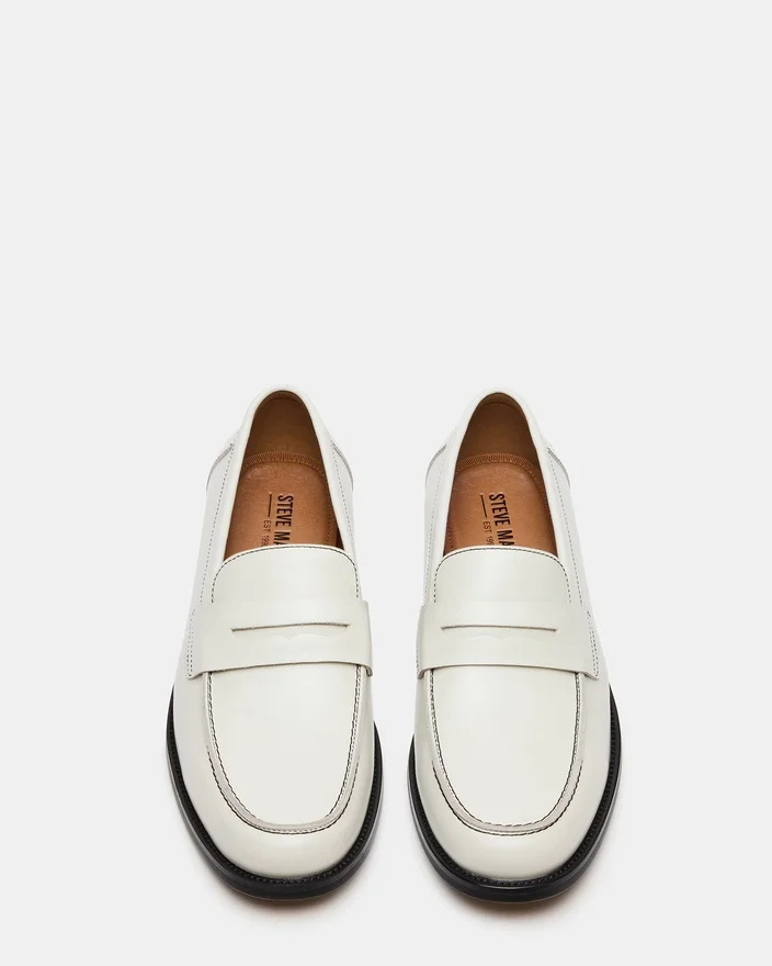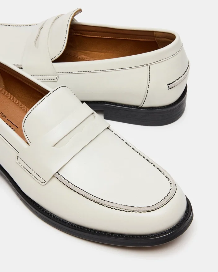 Vi præsenterer den ubesværede stil i Natan hvid læder loafer. Med et elegant design og nem slip-on-konstruktion tilbyder disse sko komfort og raffinement.