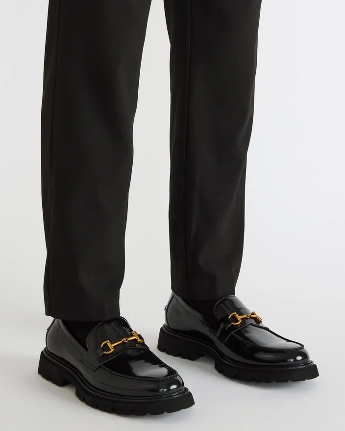 Naxos sort læder slip-on loafer kombinerer tidløs stil med holdbart design og har et karakteristisk hestebit-logo, der giver et raffineret touch. Dens lug-sål giver forbedret greb og stabilitet, hvilket gør den til et alsidigt valg til både professionelle og Casual omgivelser. Denne loafer er fremstillet af premium-materialer og sikrer varig komfort og sofistikering.