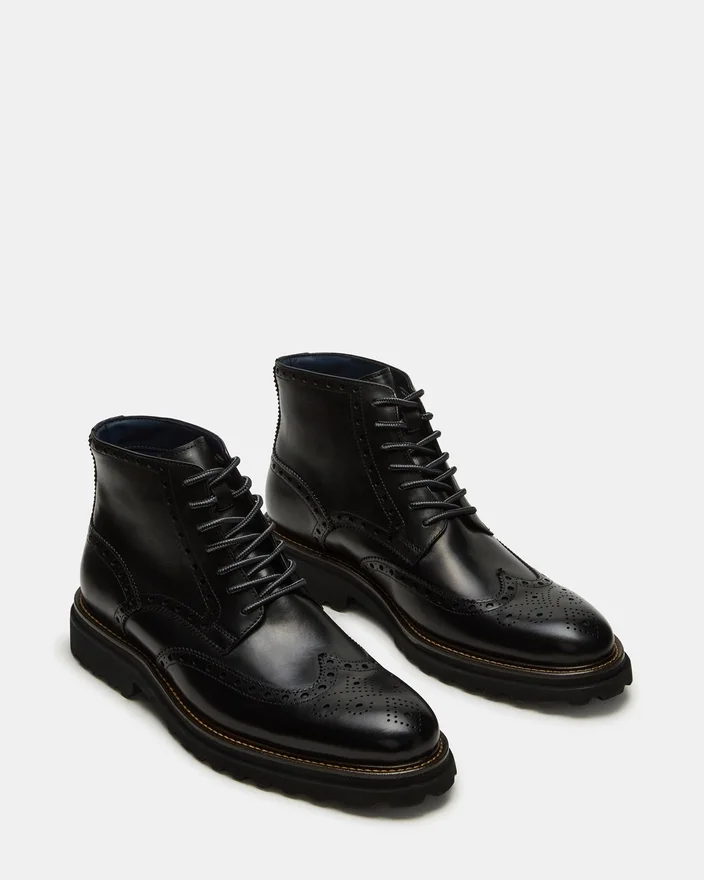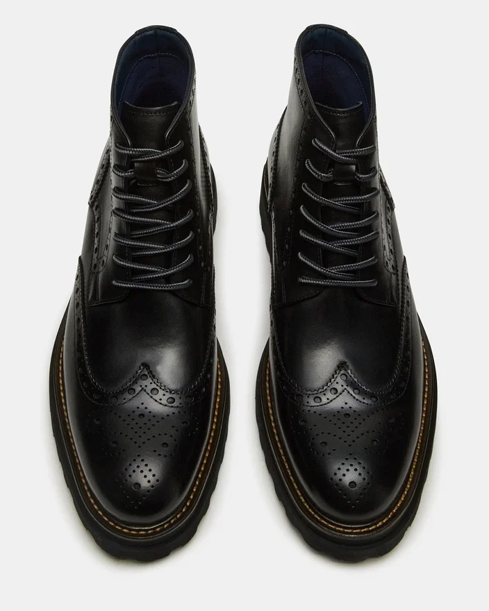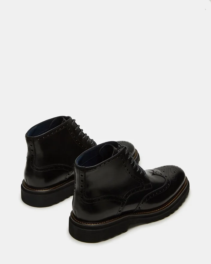 Koda sort læder snørestøvle kombinerer holdbarhed med raffineret stil. Det sikre snøresystem sikrer en tilpasselig pasform, mens den robuste sål giver pålideligt greb og støtte. Designet med både komfort og holdbarhed for øje er denne støvle et uundværligt supplement til enhver garderobe, der søger en blanding af klassisk håndværk og moderne funktionalitet.