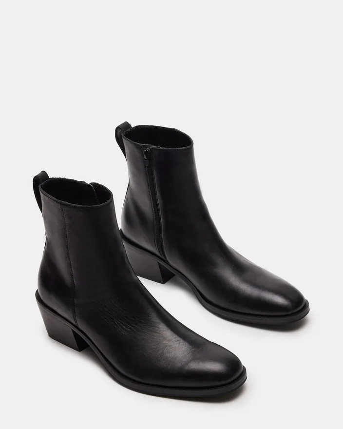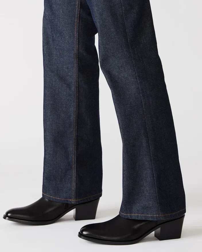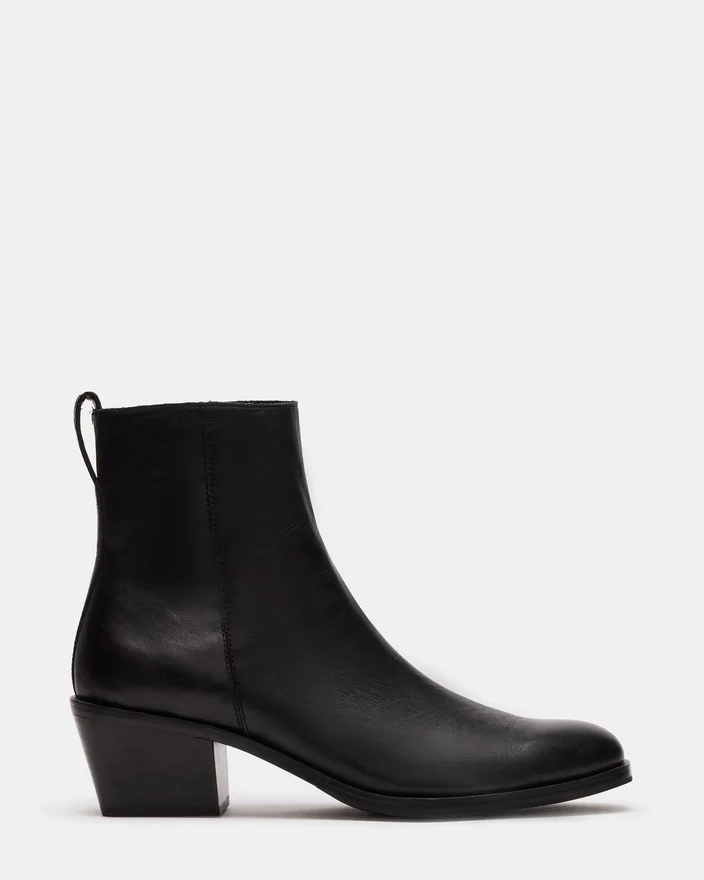 Richie-støvlen kombinerer en vinklet blokhæl med en overdel i ankelhøjde for et opdateret Western-inspireret look.