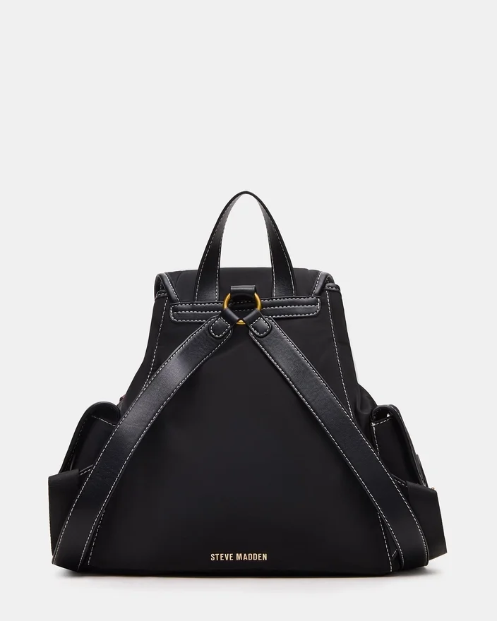 Denne Studio Bag Black er en preppy-inspireret rygsæk i nylon med magnetlukning og snorelukning for sikker og nem adgang. Designet med flere udvendige lommer og to indvendige lommer foran tilbyder den organiseret opbevaring til daglige fornødenheder. Lommen med lynlås bagpå gør den praktisk, mens de justerbare stropper og aftagelige logo-charms øger både komforten og stilen. Ideel til dem, der søger et funktionelt, men alligevel moderigtigt tilbehør.