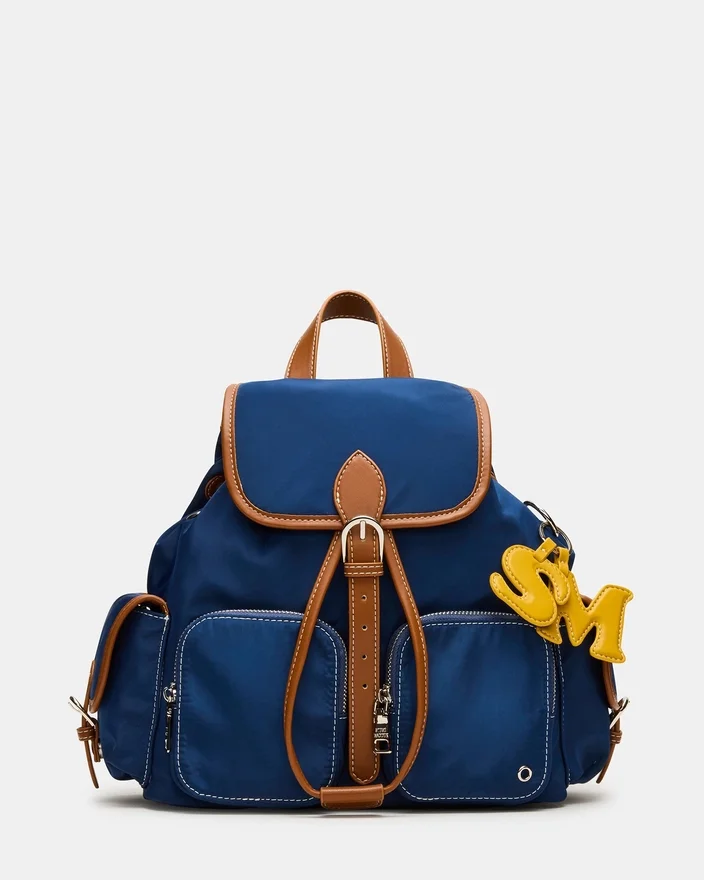Denne Studio Bag Navy er en preppy-inspireret rygsæk i nylon med magnetlukning og snorelukning for sikker og nem adgang. Den er designet med flere udvendige lommer og to forlommer indeni og tilbyder organiseret opbevaring til daglige fornødenheder. Lommen med lynlås bagpå gør den praktisk, mens de justerbare stropper og aftagelige logo-charms øger både komforten og stilen. Ideel til dem, der søger et funktionelt, men alligevel moderigtigt tilbehør.