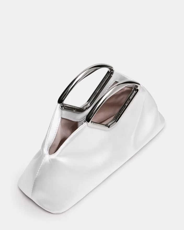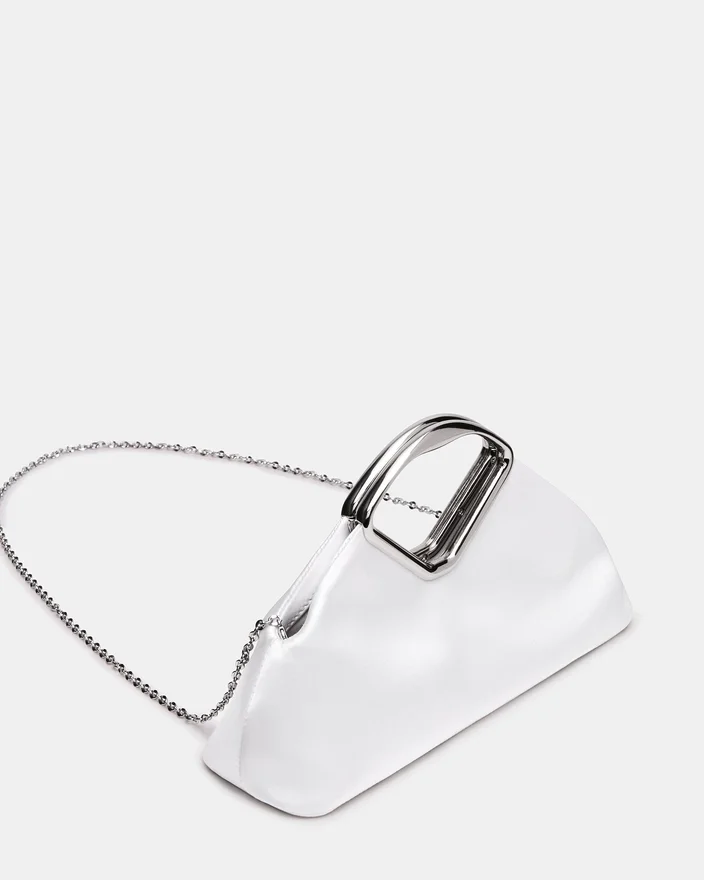 Barbara-tasken i hvid kombinerer raffineret elegance med praktisk sofistikering. Denne clutch har en blød, afrundet silhuet med moderne, rene linjer og er fremstillet af luksuriøst stof med en enestående fornemmelse. Specialfremstillede metalbeslag giver ergonomisk komfort og en karakteristisk stil, mens den magnetiske snaplukning sikrer sikker lukning. Det indvendige kortlomme holder styr på det vigtigste, og den aftagelige kæderem giver alsidige stylingmuligheder – bær den som en clutch eller med hænderne fri. Et tidløst stykke, der går problemfrit fra dag til aften.