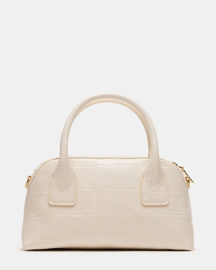 Melodie-tasken i benfarvet krokodille har et alsidigt håndtag øverst samt en aftagelig skulderrem, der giver fleksible bæremuligheder. Den er forsynet med en charmerende, aftagelig bjørnevedhæng og et farverigt tørklæde, der tilføjer et sofistikeret touch til dit outfit. Opbevar dine vigtigste ting sikkert med lynlåslukningen, mens den indvendige lomme på bagvæggen giver organiseret opbevaring til mindre genstande. Denne taske kombinerer stilfulde detaljer med praktisk design, perfekt til raffineret, daglig brug.