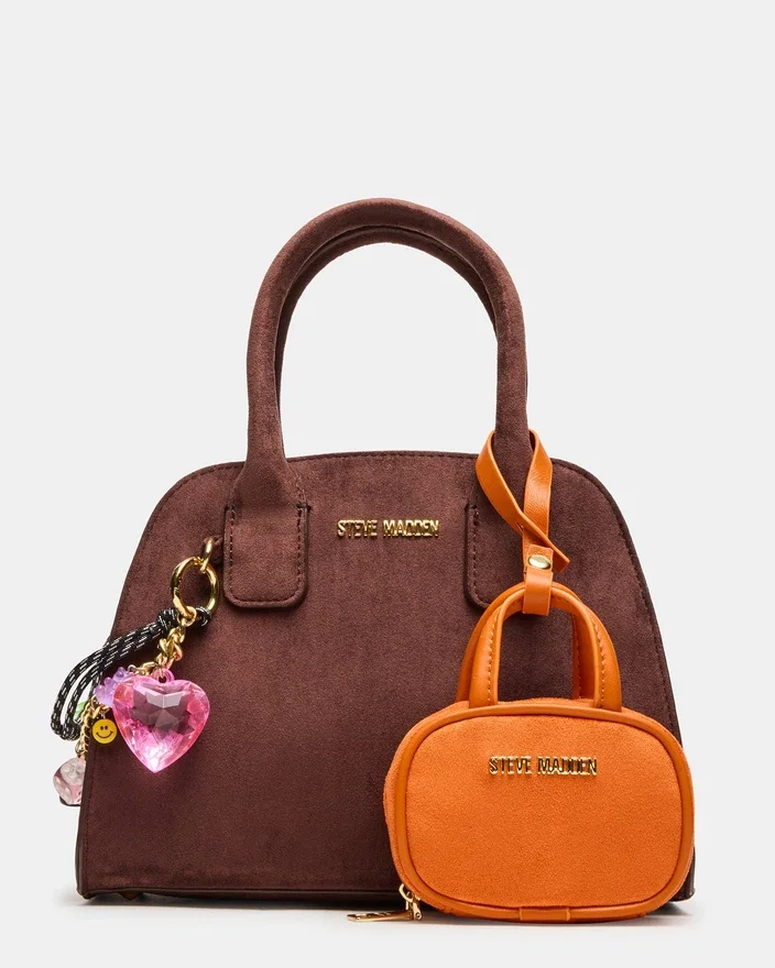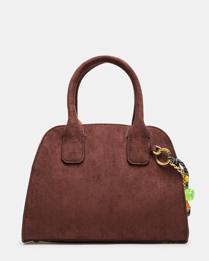 Moore-tasken i chokoladefarve kombinerer sofistikeret design med praktisk alsidighed. Denne taske med håndtag har en aftagelig skulderrem, så du nemt kan skifte mellem at bære den i hånden og over skulderen. Tilpas dit look med de medfølgende taskecharms, der tilføjer personlighed, og brug den aftagelige minipung til at organisere mindre nødvendigheder. Fremstillet med ekspertise til den moderne professionelle, der værdsætter både stil og funktionalitet.<!–