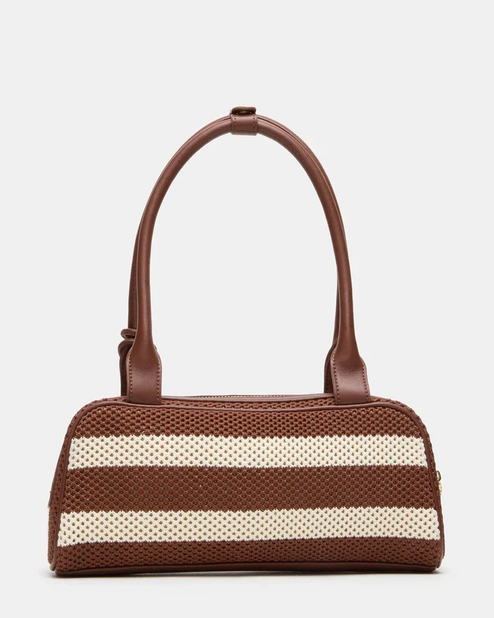Opgrader dit tilbehør med Lagune-tasken i chokoladefarvet multi. Denne aflange skuldertaske har lynlåslukning øverst for ekstra sikkerhed. Tasken er fremstillet af slidstærkt stråmateriale og prydet med en aftagelig taskecharm med logo og hængelås, hvilket gør den både funktionel og stilfuld.